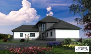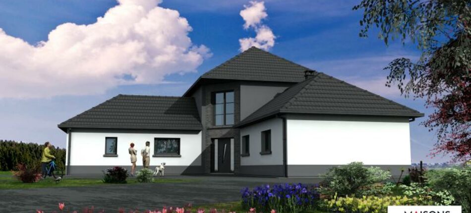 Aperçu d’un récent avant-projet, une maison en L avec des briquettes grises au niveau des fenêtres et de l’entrée !