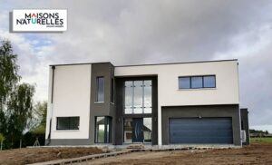 Nouvelle photo de l’une de nos dernières réalisations, il s’agit d’une grande maison cube avec un grand garage et des grandes baies vitrées, on aime beaucoup !