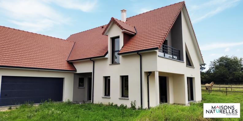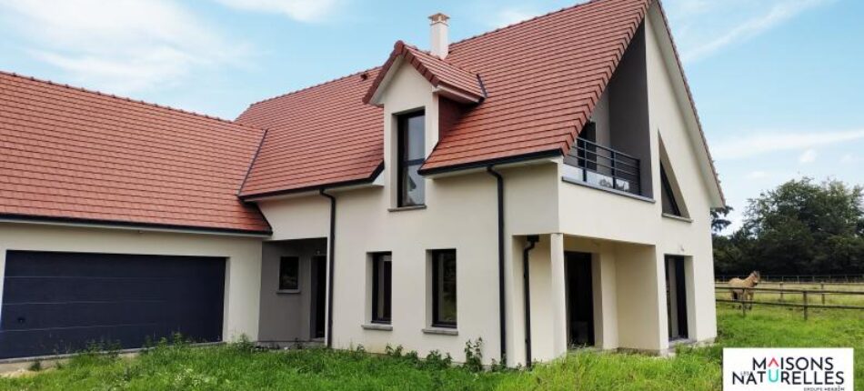 Petit aperçu de l’une de nos réalisations à Vron dans le (80). Une maison à étage avec toiture couleur brique et un grand garage !