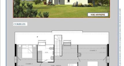A l'étage : grand palier desservant deux chambres et une salle de bain avec WC. Surface habitable (hors garage) : environ 117 m².