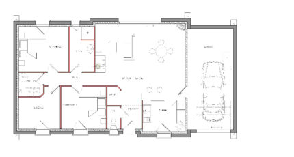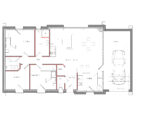 Ce modèle avec garage comprend un grand séjour salon avec cuisine ouverte, deux chambres, un bureau, une salle de bains ,un WC, un cellier et un vestiaire dans l'entrée le tout sur 83 m² (hors garage et combles).