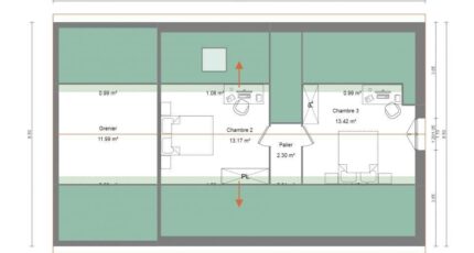 Plan maison 5 pièces 3 chambres Surface maison 96 m2