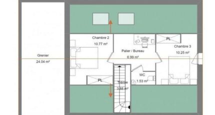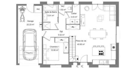 Plan maison 5 pièces 3 chambres Surface maison 97 m2