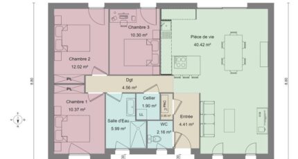 Plan maison 5 pièces 3 chambres Surface maison 93 m2