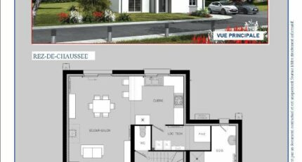 Au rez-de-chaussée : entrée, cuisine ouverte sur séjour, WC, suite parentale (chambre avec salle de bains attenante) ;